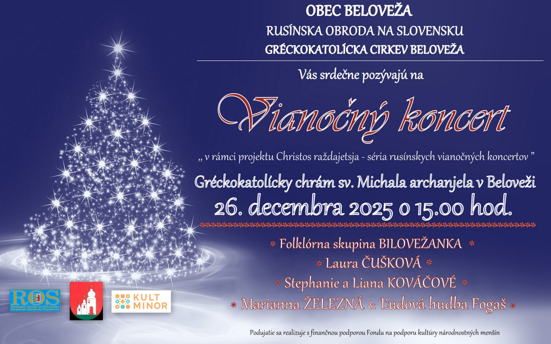Všetkých vás srdečne pozývame na Vianočný koncert, kde spolu zažijeme pravú vianočnú atmosféru plnú hudby, pokoja a radosti.